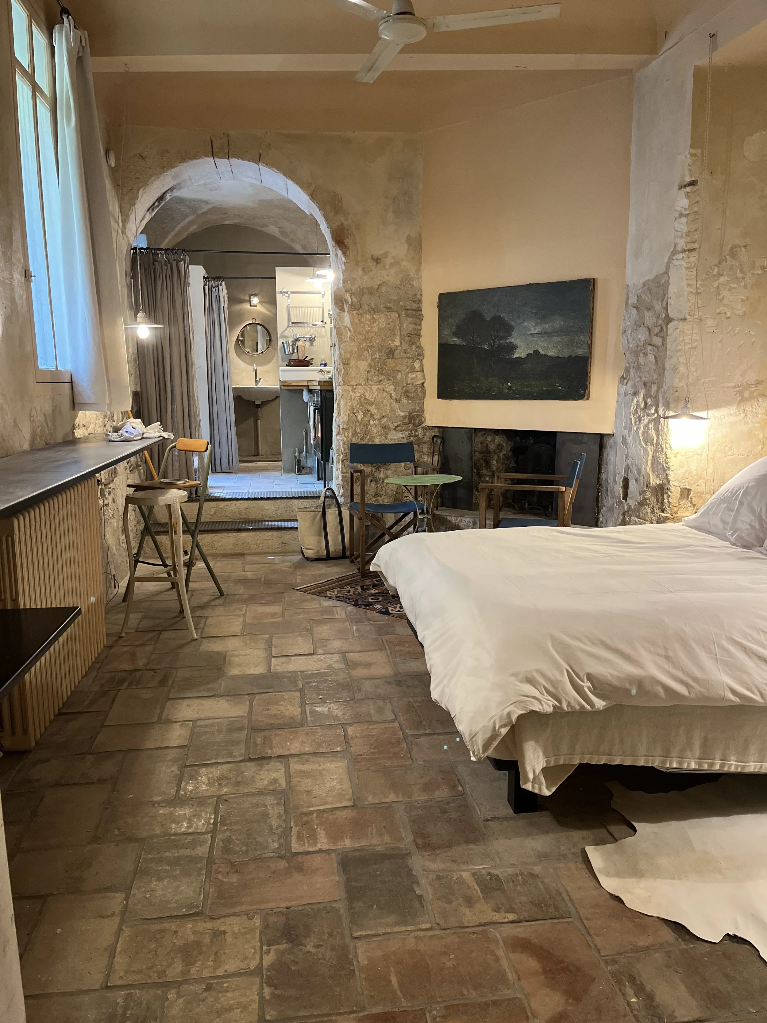 This Atelier was our workroom since 2007. Then winter of 2015 we decided to turn it into a studio apartment. This Atelier, like our other two apartments in this grand old 17thc Residence, is in the quiet historical heart of this market town of Apt, which is at the beginning (or end) of the Luberon region. Apt was a Roman city with a coliseum, long gone. Everything in Apt is within an easy walk. It has the biggest street market of the Luberon on Saturdays. There are grocers, butchers, bakeries, fresh produce stores, cinema, specialty stores, restaurants and cafes.