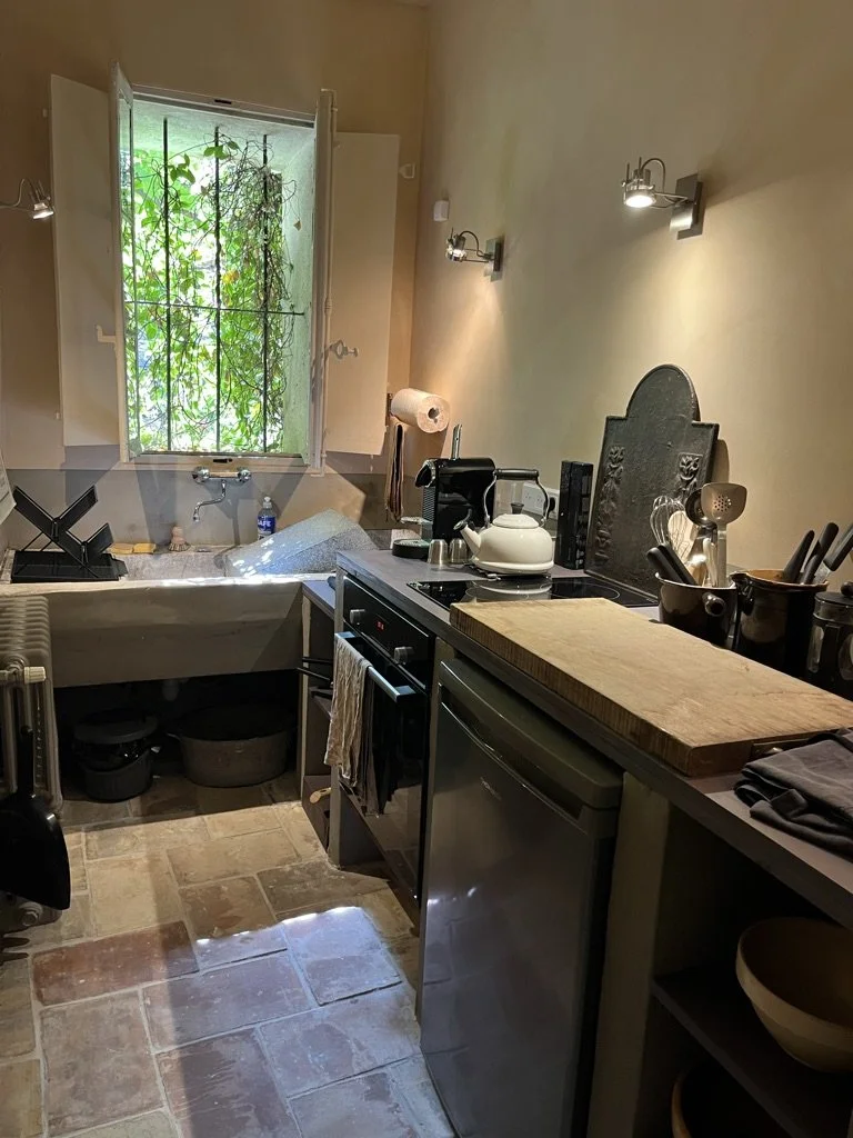 In a restored and subdivided 17th century grand home in the historic center of the town of Apt, we have a one bedroom, one bath with kitchen and two gardens. This apartment has been redesigned in the spirit of the ancient house in which it is located.