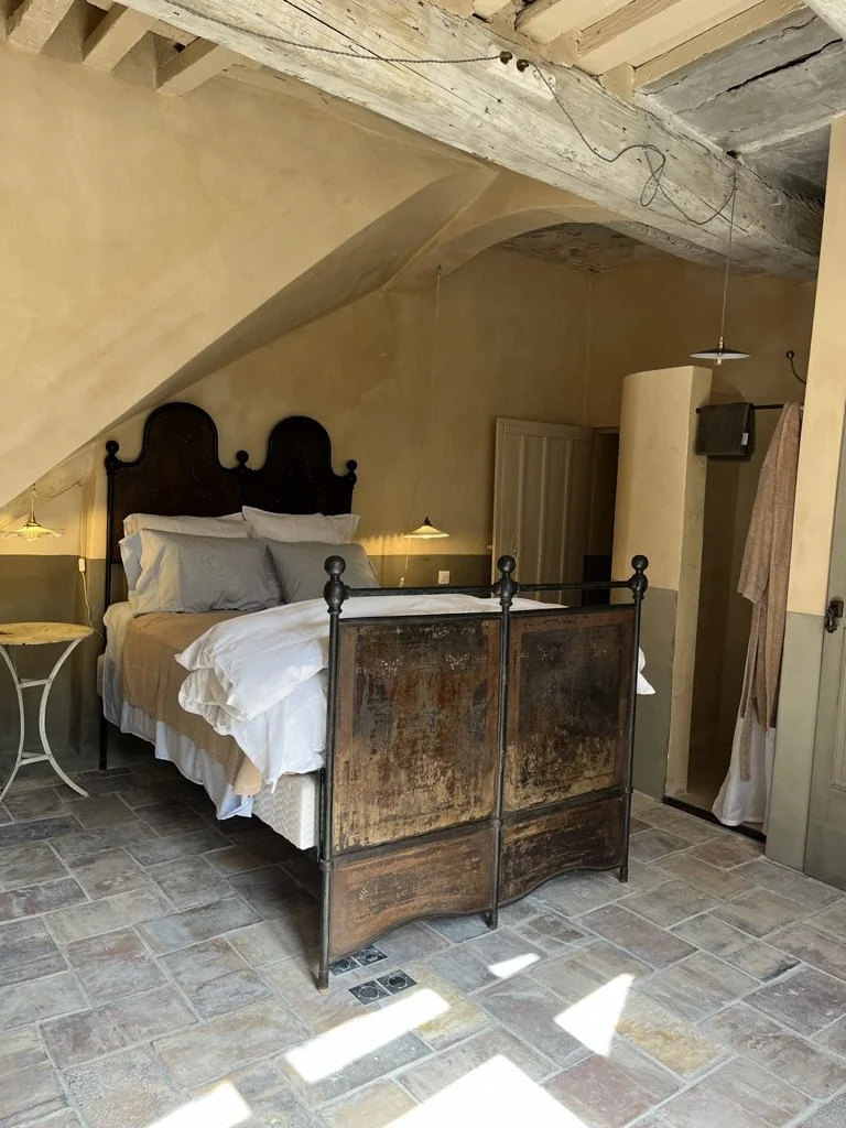 The design blends a respect for the historic structure and contemporary sensibility. The furnishings are antiques found in southern France, bed linens are the finest linens. The apartment has a wood burning fireplace, a new electrical, plumbing and heating system with new appliances and bathroom fixtures. This apartment is approximately 400 square feet.